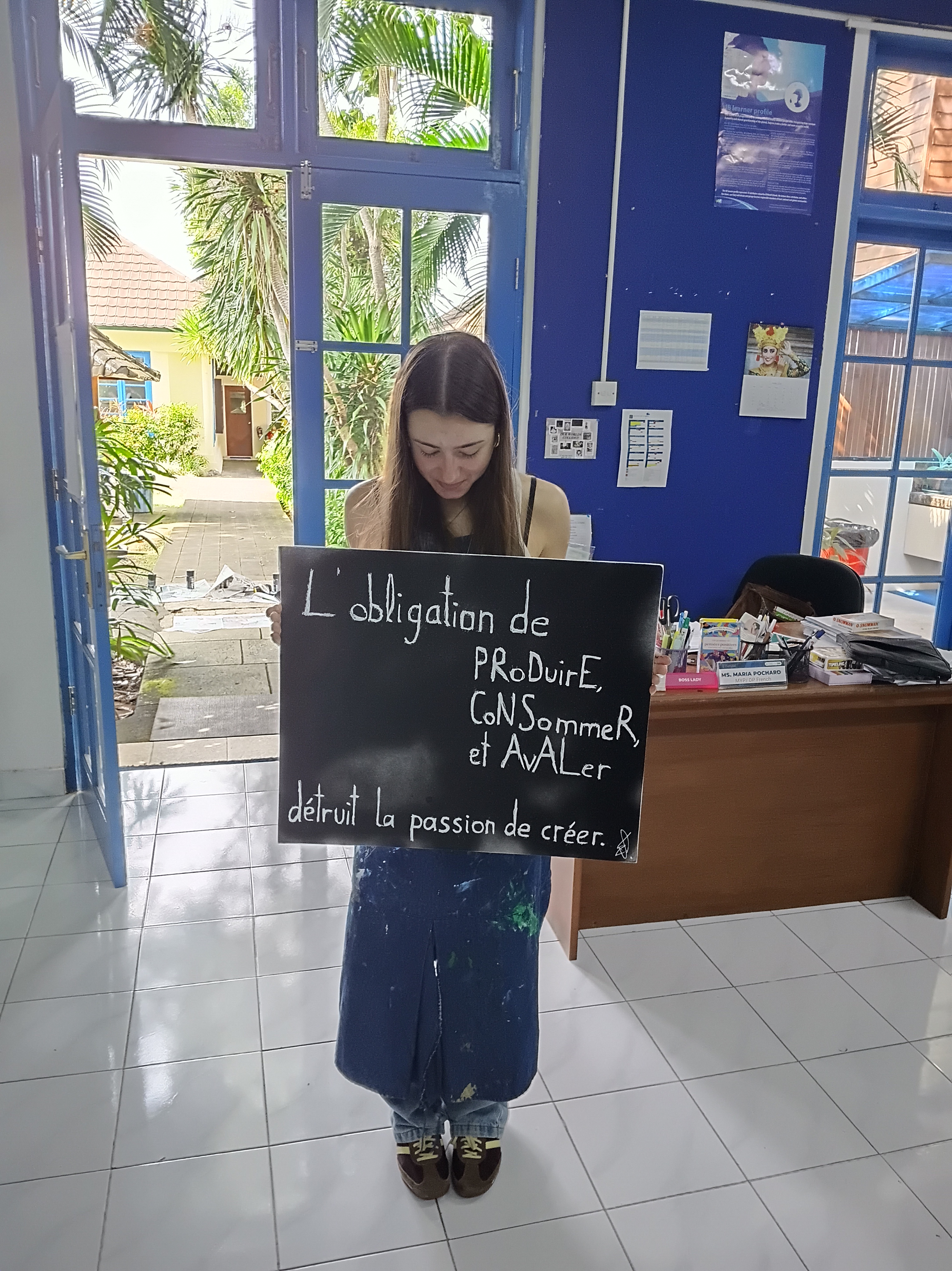 L’atelier Batik faisait partie du sous-thême IB Traditions. Mes élèves avaient étudié en classe diffèrentes traditions françaises et asiatiques. Il était tout à fait naturel pour finir l’unité d’offrir aux élèves une expérience autour d’une tradition locale. Étant une grande passionnée de toute discipline artistique, j’ai emmene mes eleves faire un atelier de batik chez la talentueuse artiste Rara Yunegide.